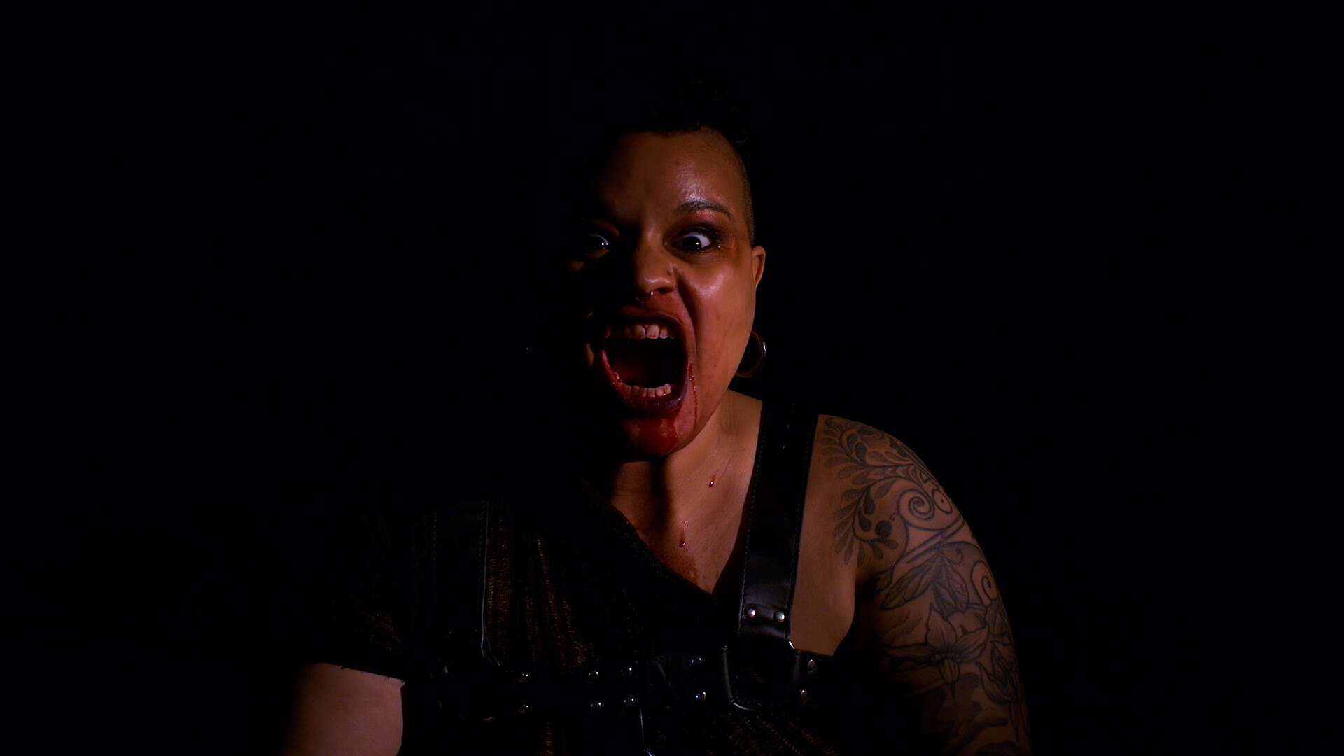 BLOODTHIRST di hiperlinque. Nel cuore della notte, Profânia porta uno spuntino alla partner vampira, Tormenta. I due si divertono in un acceso incontro fino a quando la loro preda cerca di fuggire, ponendo fine alla notte di lussuria con un bagno di sangue.