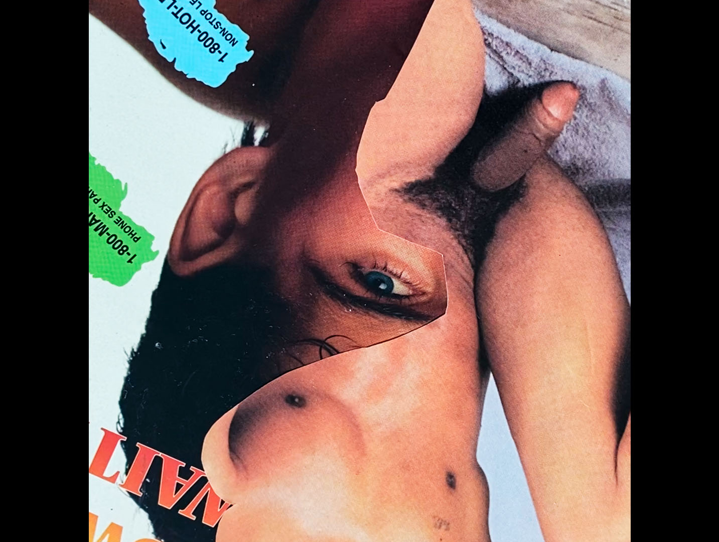 HUNK IN TRUNKS di Lee Campbell. “Le esperienze migliori sono quelle nei pubblici spazi privati”. La narrazione, presentata come poesia visiva, ci porta nella Gran Bretagna dei primi anni Novanta, dove l’educazione sessuale per gli adolescenti gay ignorava ampiamente le relazioni omosessuali. In assenza di internet, questi adolescenti riadattavano in modo creativo vari oggetti originariamente destinati alle donne, per esplorare il desiderio e l’amore omoerotico.